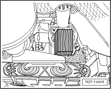 - Press the engine and transmission forward by hand and secure in this position using a suitable block of wood - A -.