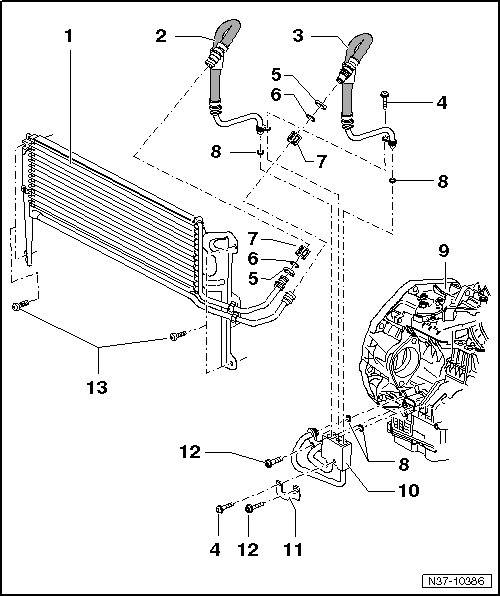 • Removing and installing, refer to => [ Transmission Fluid Cooler ] Transmission Fluid Cooler.
