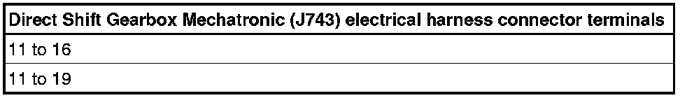 - Using a multimeter, check the Direct Shift Gearbox Mechatronic (J743) electrical harness connector terminals for voltage.
