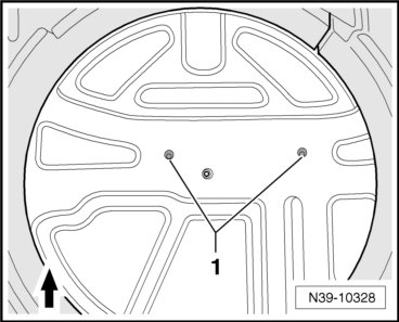 - Insert two new bolts - arrow - through the holes in the luggage compartment floor and tighten. Tightening specification.