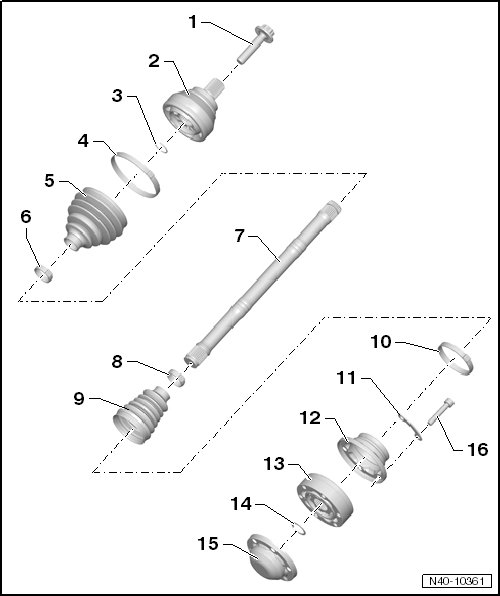 • Checking, refer to => [ Outer CV Joint, Checking, with Bolted CV Joint VL 107 ] Outer CV Joint, Checking, with Bolted CV Joint VL 107.