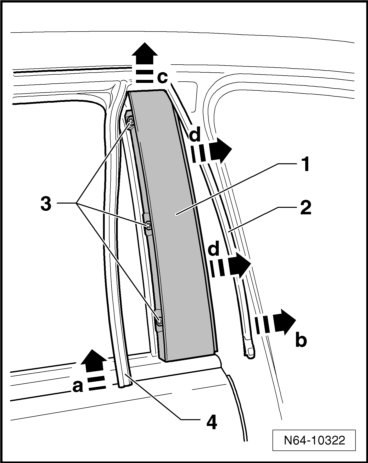 - Pull the trim - 1 - in the direction of the B-pillar - arrows d -.
