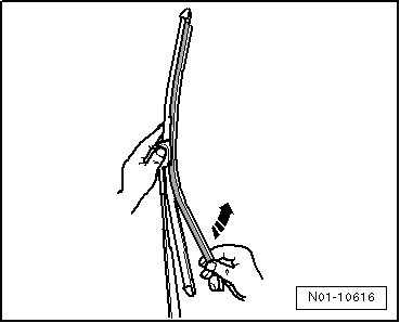 • Can be recognized in that the protective rail - arrow - is pushed onto the wiper blade