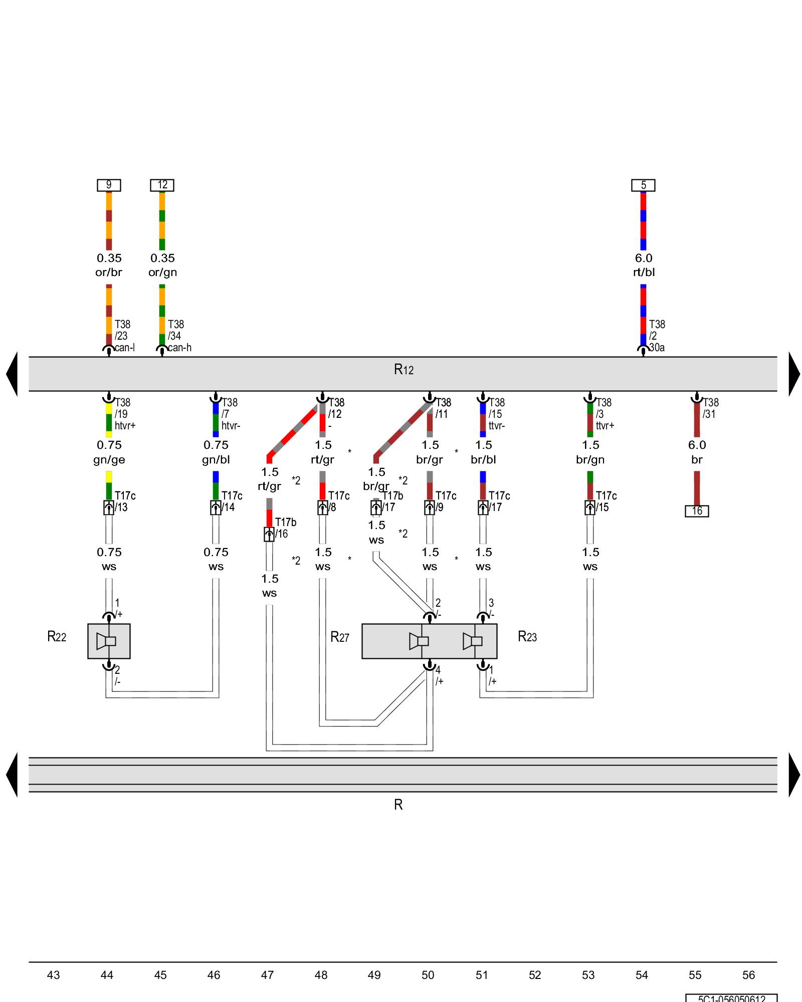 Radio, Amplifier, Right front treble speaker, Right front bass speaker, Right front mid-treble speaker