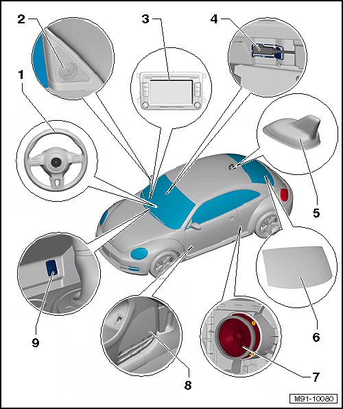 • Transport protection, activating/deactivating, refer to => [ RCD 510 (Premium 8) Transportation Safeguard, Activating and Deactivating ] RCD 510 (Premium 8) Transportation Safeguard, Activating and Deactivating.