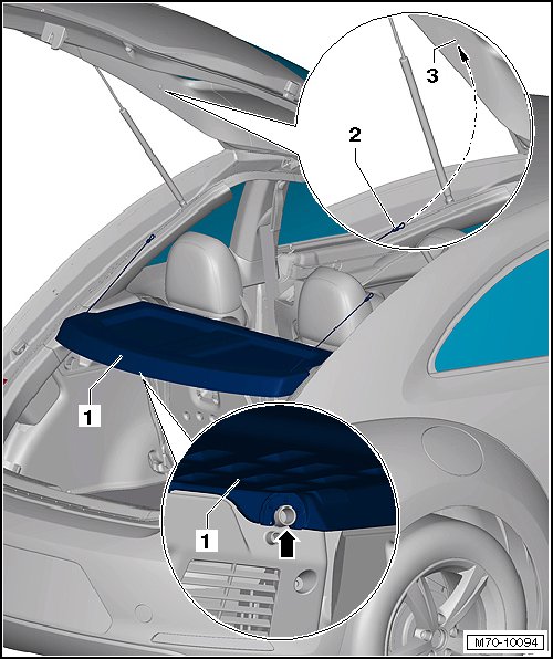 - Remove the luggage compartment cover - 1 - from the side luggage compartment cover - arrow -.