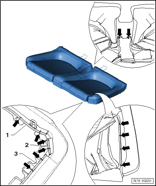 • The upholstery clips are destroyed during removal. They must be replaced when installing. Therefore use the upholstery clip pliers (V.A.G 1634).