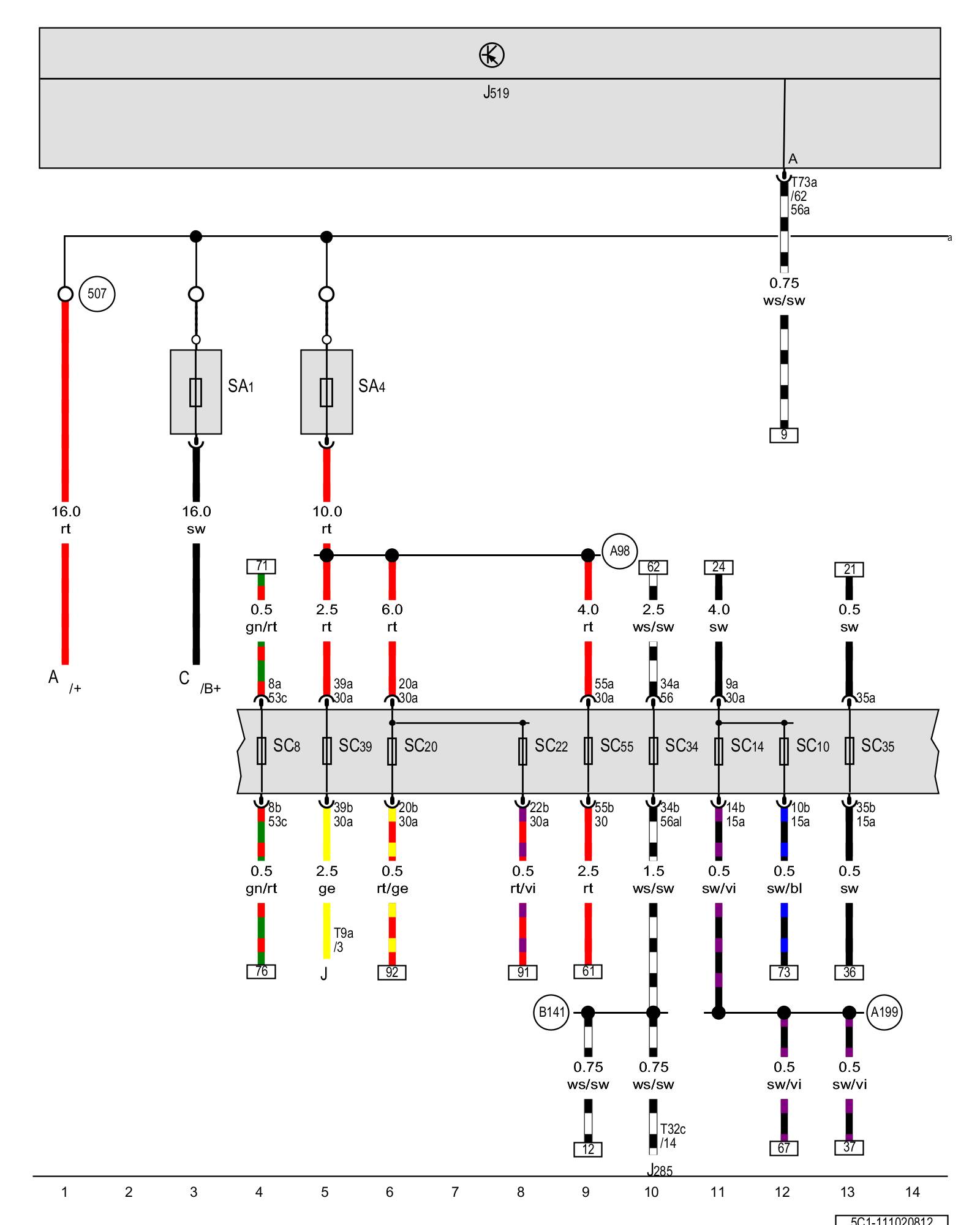 SC14 - Fuse 14 (on fuse panel C) Overview Of Fuses (SA), (SB), (SC)