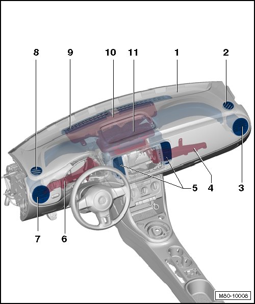 • The air distribution is activated using the intermediate piece for the air vent, refer to item 11 => [ (Item 11) Intermediate Piece For The Instrument Panel Air Vent ].