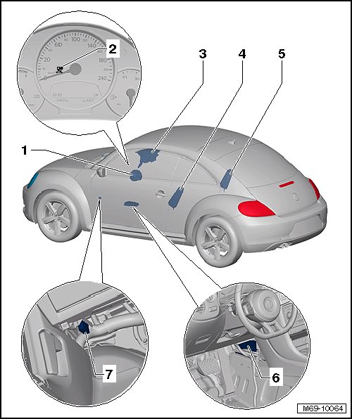 • Driver side shown located in the B-pillar, Front passenger seat belt tensioner igniter 1 -N154- similar.