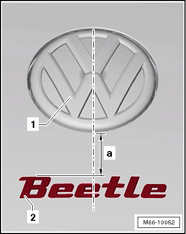 The name plate - 2 - is aligned with the rear lid for the emblem in the unlocking element- 1 -.