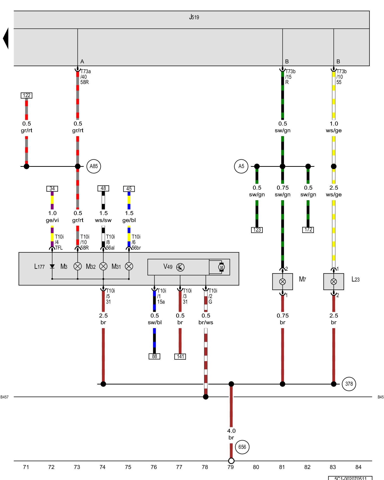 (A5) - Right turn signal positive connection (in instrument panel wiring harness)
