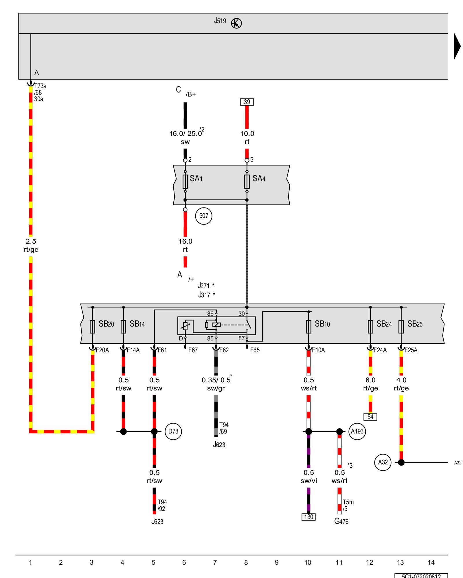 SB14 - Fuse 14 (on fuse panel B) Overview Of Fuses (SA), (SB), (SC)
