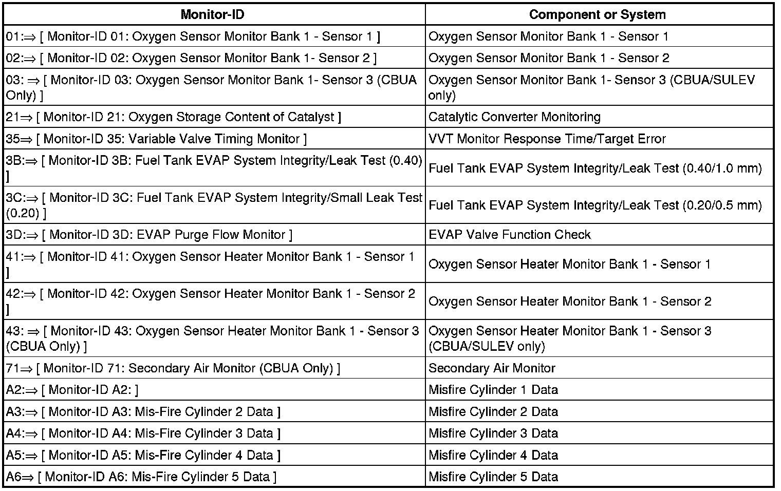 Monitor-ID 03: Oxygen Sensor Monitor Bank 1- Sensor 3 (CBUA Only)