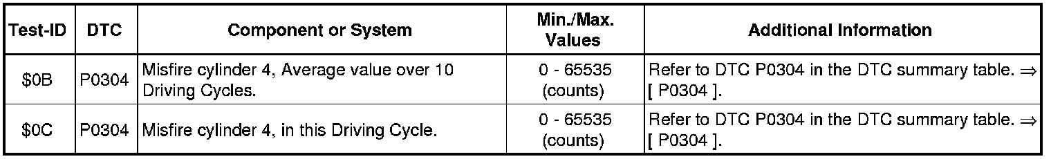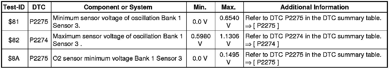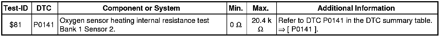 - If any of components or systems fail to meet the specified values. Refer to Diagnostic "Mode 03: Interrogating Fault Memory" to check for stored DTC's or the corresponding diagnostic repair procedure => [ Diagnostic Mode 03 - Read DTC Memory ]. Diagnostic Mode 03 - Read DTC Memory