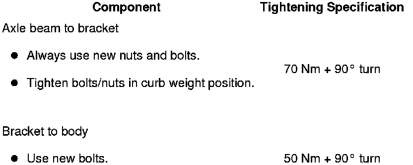 - Tighten the rear axle in its curb weight position. Refer to => [ Rear Axle, Lifting to Curb Weight Position ] Rear Suspension.