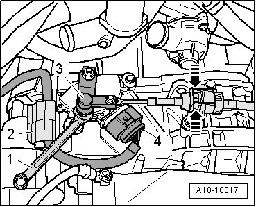 - Disconnect the connector - 4 - from the multifunction transmission range switch (F125) and free up the electrical wire - 2 -.