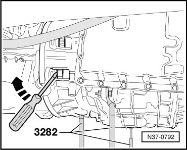 - Install the transmission support (3282) onto the engine-/gearbox jack (V.A.G 1383 A).