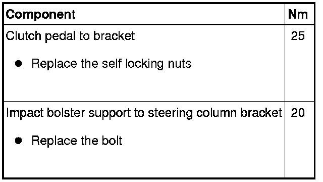 - Press the clutch pedal slightly, push the bolt through and tighten the self-locking nut to specification.