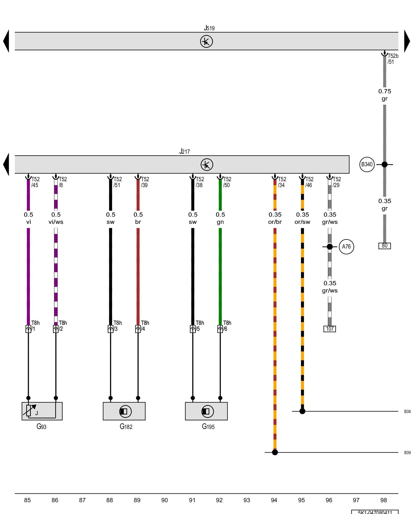 Transmission Fluid Temperature Sensor -G93- / Transmission Input Speed Sensor -G182- / Transmission Output Speed Sensor -G195-