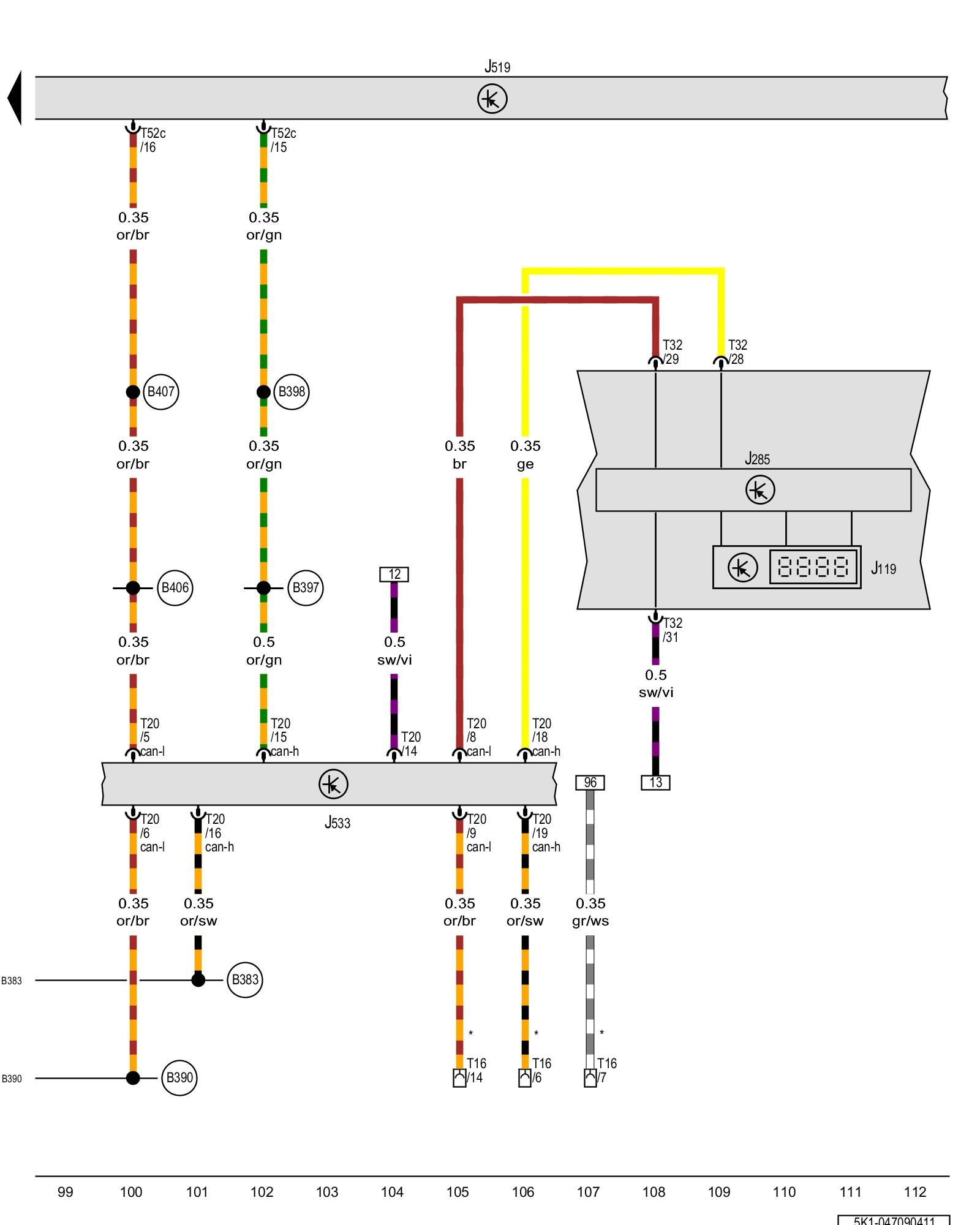 (B397) - Comfort system CAN bus high connection 1 (in main wiring harness)
