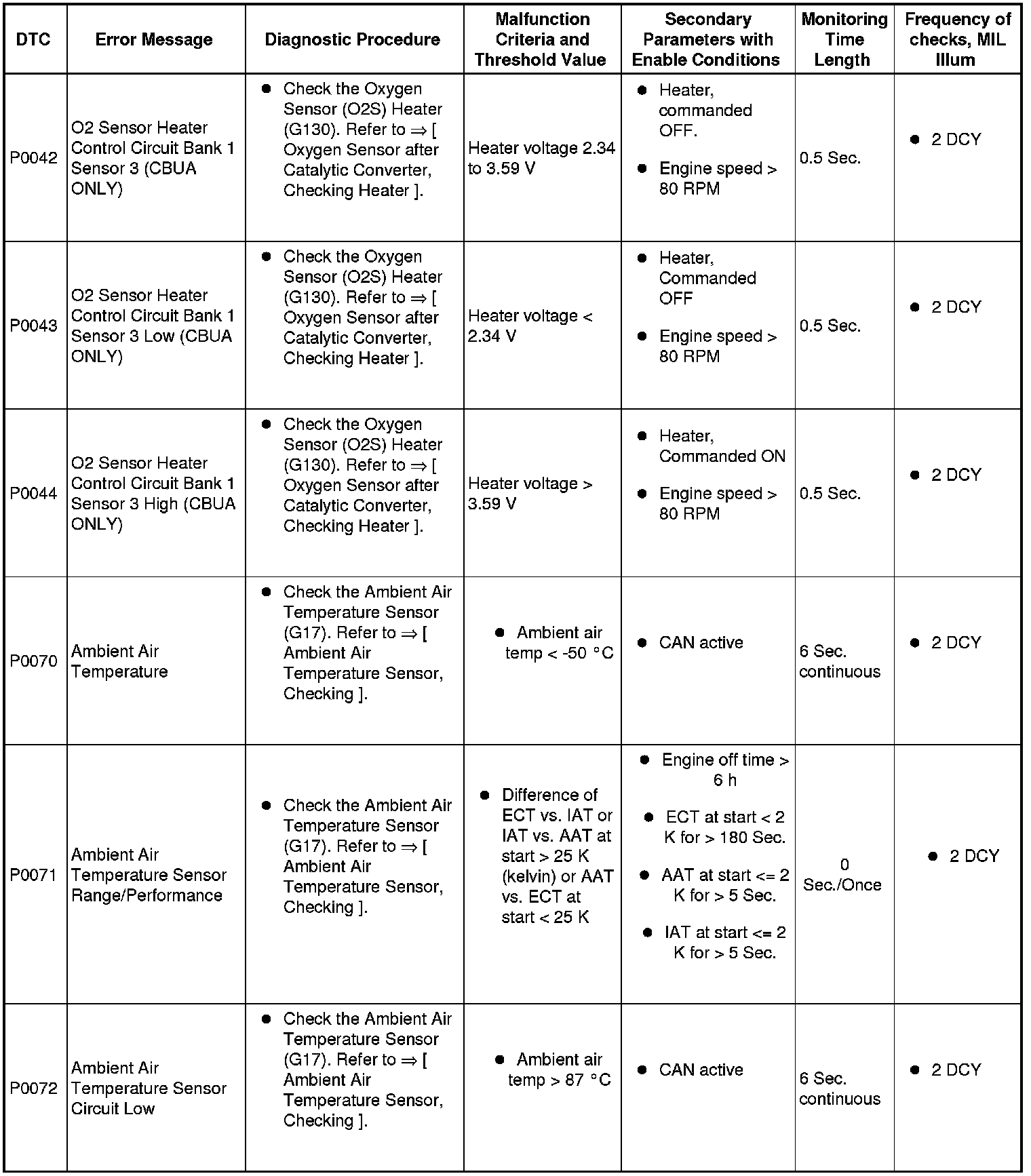 A L L Diagnostic Trouble Codes ( DTC )