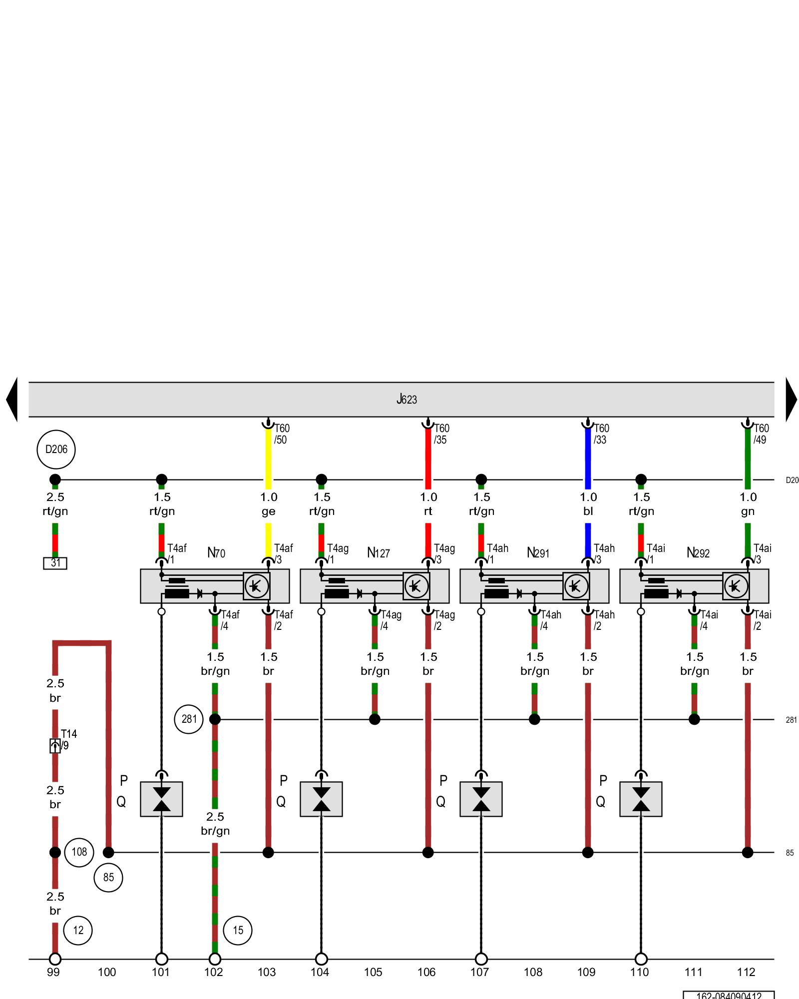 N127 - Ignition coil 2 with power output stage Ignition Coils:N70, N127, N291, N292, N323