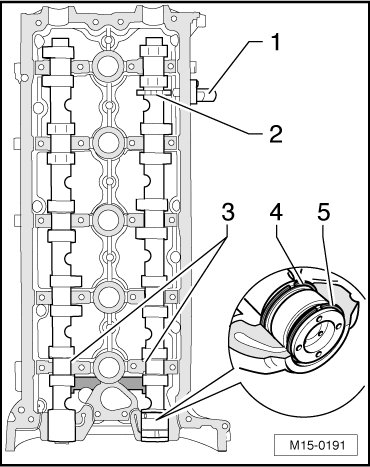 The camshaft bearings are integrated in the cylinder head and in the guide frame. Before removing the guide frame, the adjuster and sprocket must be removed from the camshafts.