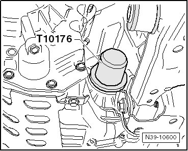 - On the left side, the drive axle must be removed. Install the seal using the thrust piece (T10176).