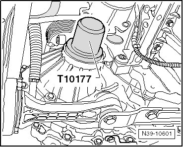 - The drives axle remains in the wheel bearing on the right side. Install the seal using the thrust piece (T10177).