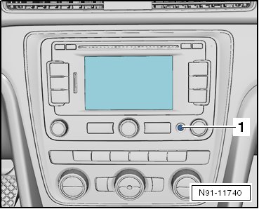 The external audio source connection - 1 - is integrated inside the RNS 315. It is located in the right side of the front trim at the bottom.