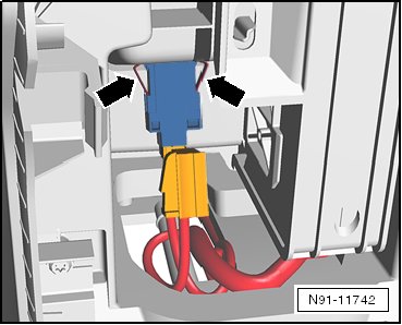 - Squeeze the clips - arrows - on the external audio source connection using (3409) and remove the external audio source connection.