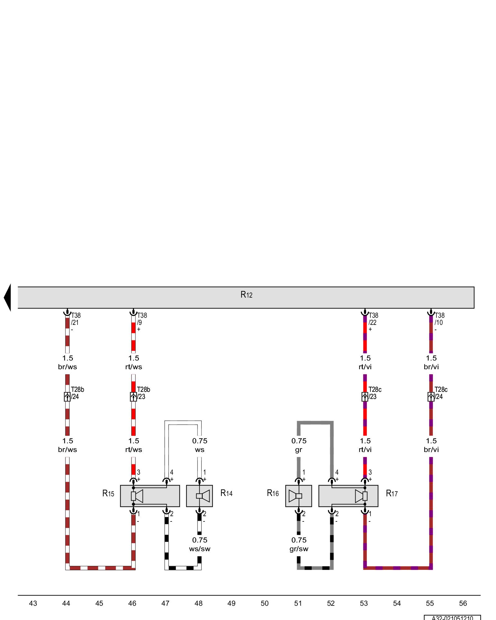 Amplifier, Left rear treble speaker, Left rear bass speaker, Right rear treble speaker, Right rear bass speaker