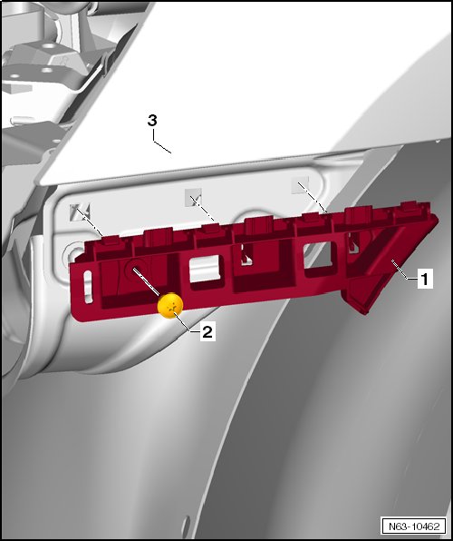 - Guide the hooks behind the fender - 3 - and clip the guide into the fender at the same time.