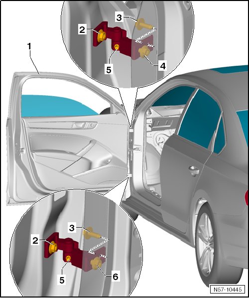 It is necessary to loosen the bolts - 3 -, - 4 - and - 6 - on the A-pillar in order to adjust the gap dimensions correctly.