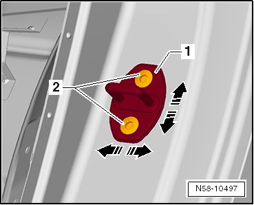 - Adjust rear door with striker pin - 1 - so that the rear door aligns with side panel when closed (wind noise).