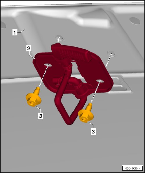 - Remove the hood catch - 2 - from the hood - 1 -.