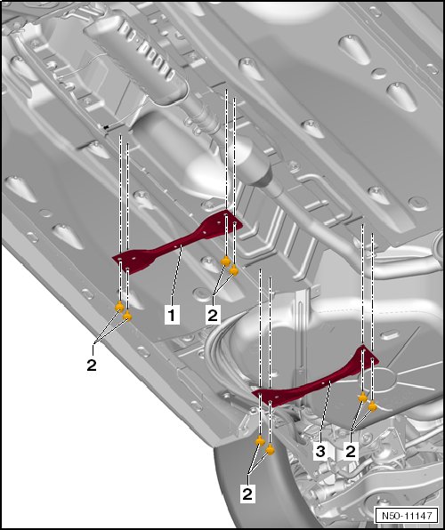 - Remove the tunnel bridge bolts - 2 - (quantity:4).