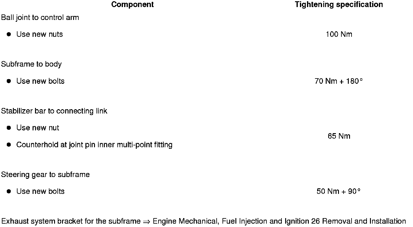 - Always make sure the intermediate plate - 1 - is installed between the subframe - 2 - and the body.