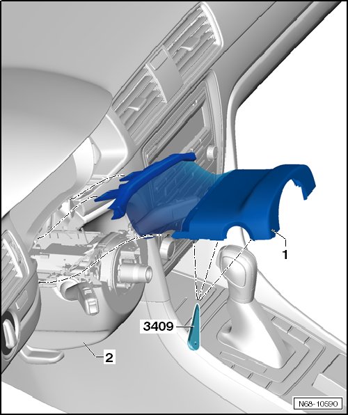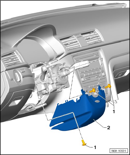 - Remove the steering column lower trim piece - 2 - from the steering column.