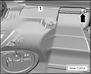 - Disconnect the connector - arrow - and remove the access/start authorization antenna 2 in vehicle interior - 2 - from the vehicle.