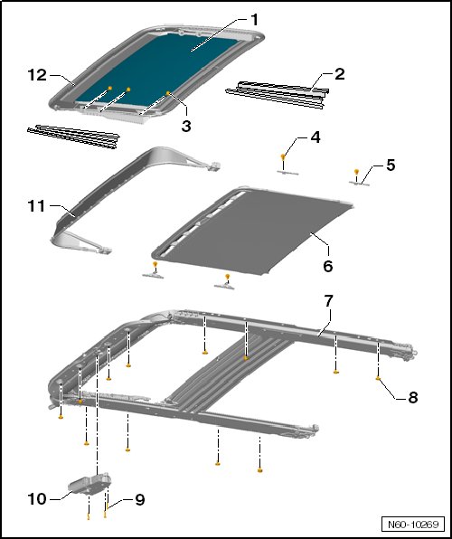 • Removing and Installing, refer to => [ Sunroof Assembly Unit ] Sunroof Assembly Unit