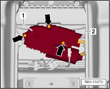 - Remove the bolts - arrows - and the sunroof motor - 1 -.
