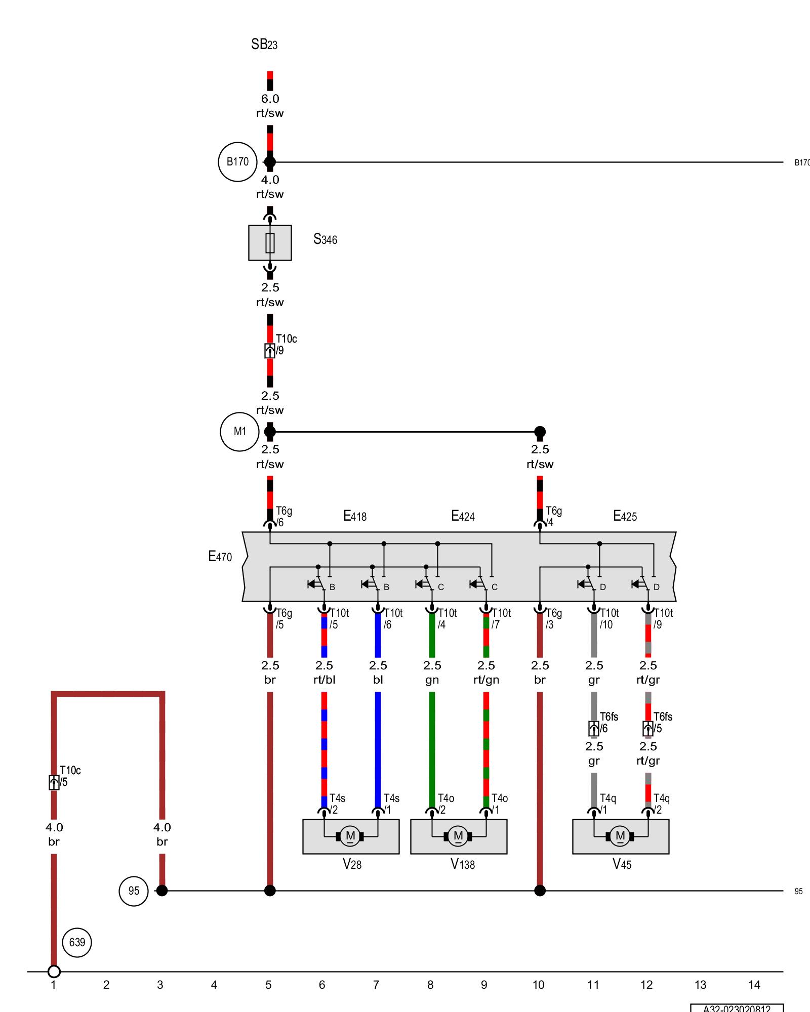 (95) - Ground connection 1 (in seat adjustment wiring harness)