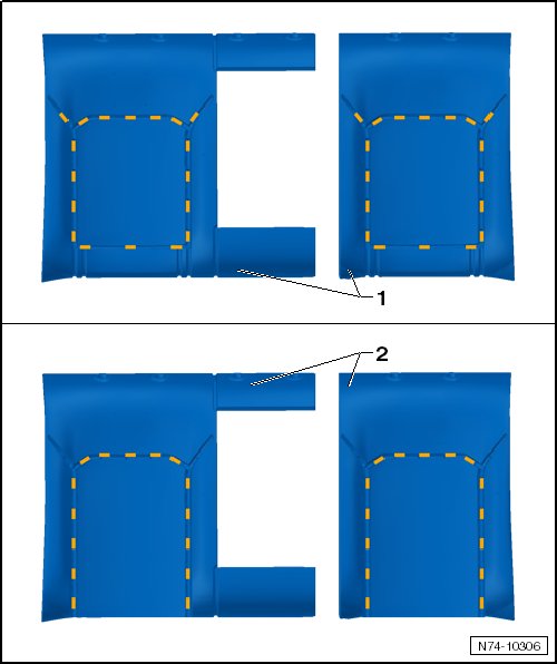 • The illustration show the attaching points for the upholstery clips - 1 - in the Comfort version and - 2 - in the Sport version.