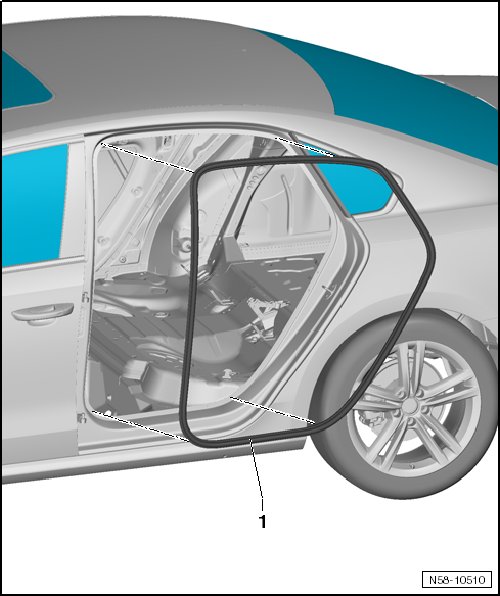 • Removing and installing is described only for the left inner door seal. Removing and installing the right inner door seal is identical.