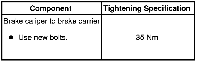 - Remove brake caliper and secure with wire so that the weight of the brake caliper does not burden or damage the brake hose.