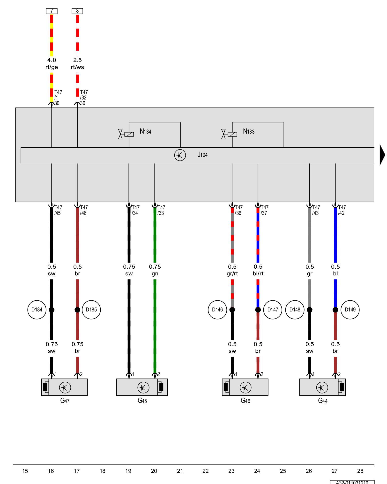 (D184) - Left front speed sensor positive connection (in engine compartment wiring harness)