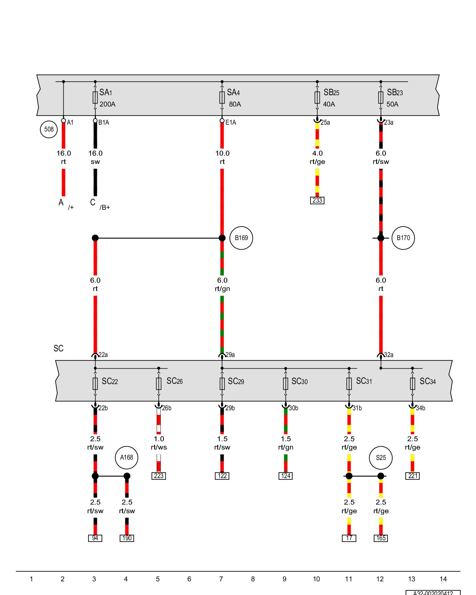 (B170) - Positive connection 2 (30) (in interior wiring harness)