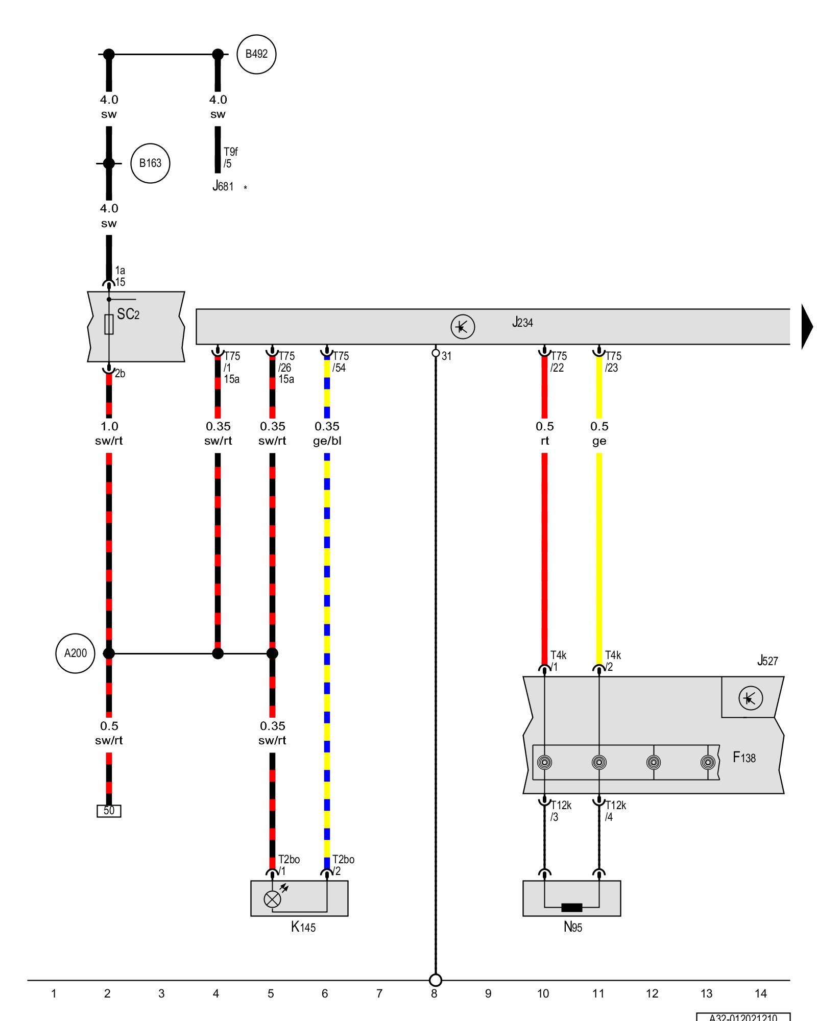 (B492) - Positive connection 3 (15) (in interior wiring harness)